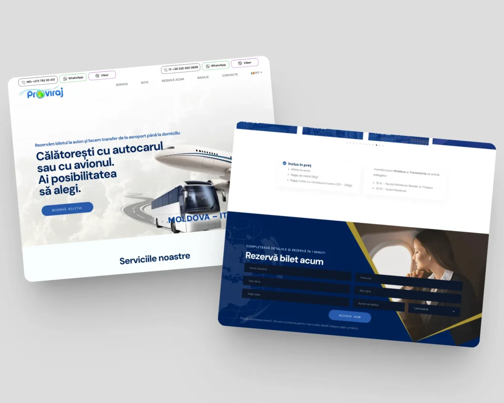 Am dezvoltat landing page-ul Turitalia, companie de transport Moldova–Italia pentru pasageri și colete. Am implementat un sistem de rezervare online a biletelor, intuitiv și ușor de administrat, oferind o experiență modernă și eficientă pentru clienți și echipa companiei.